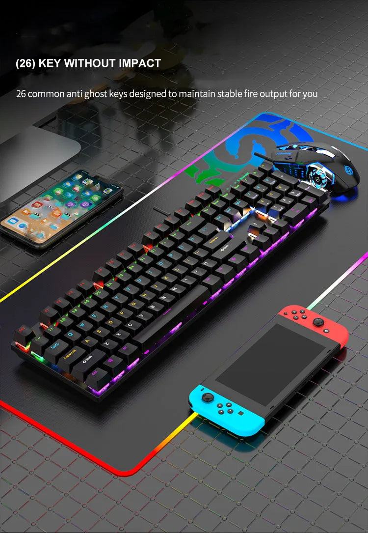🎮 Tastierë Mekanike me 104 Çelësa – Blue Switch për shtypje të shpejtë dhe me klik