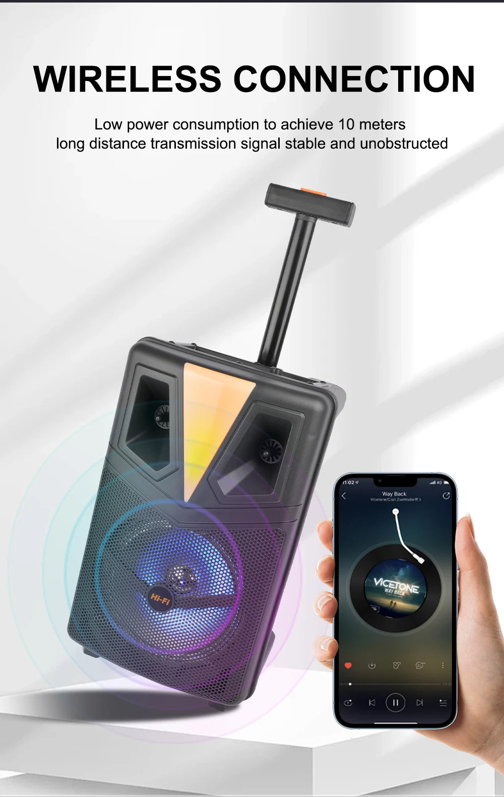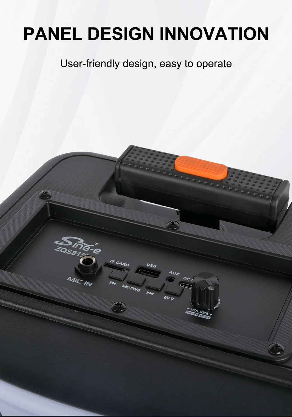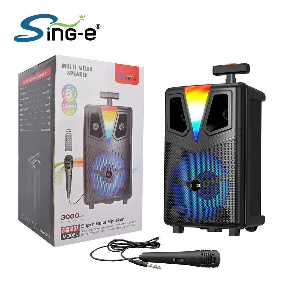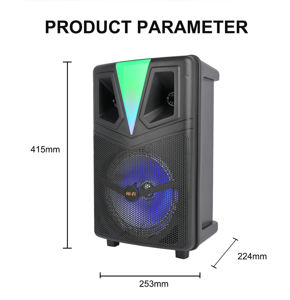 🔊 Altoparlant 8” me bass të fuqishëm: Tingull i pasur me fuqi PMPO 20W, i përshtatshëm për ambiente të brendshme dhe të jashtme